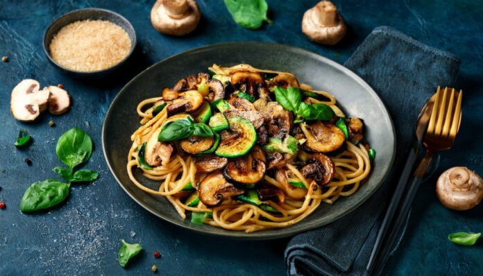 (סקיני פסטה בשילוב עם פסטה רגילה עם פטריות וקישואים, 2-3 מנות)