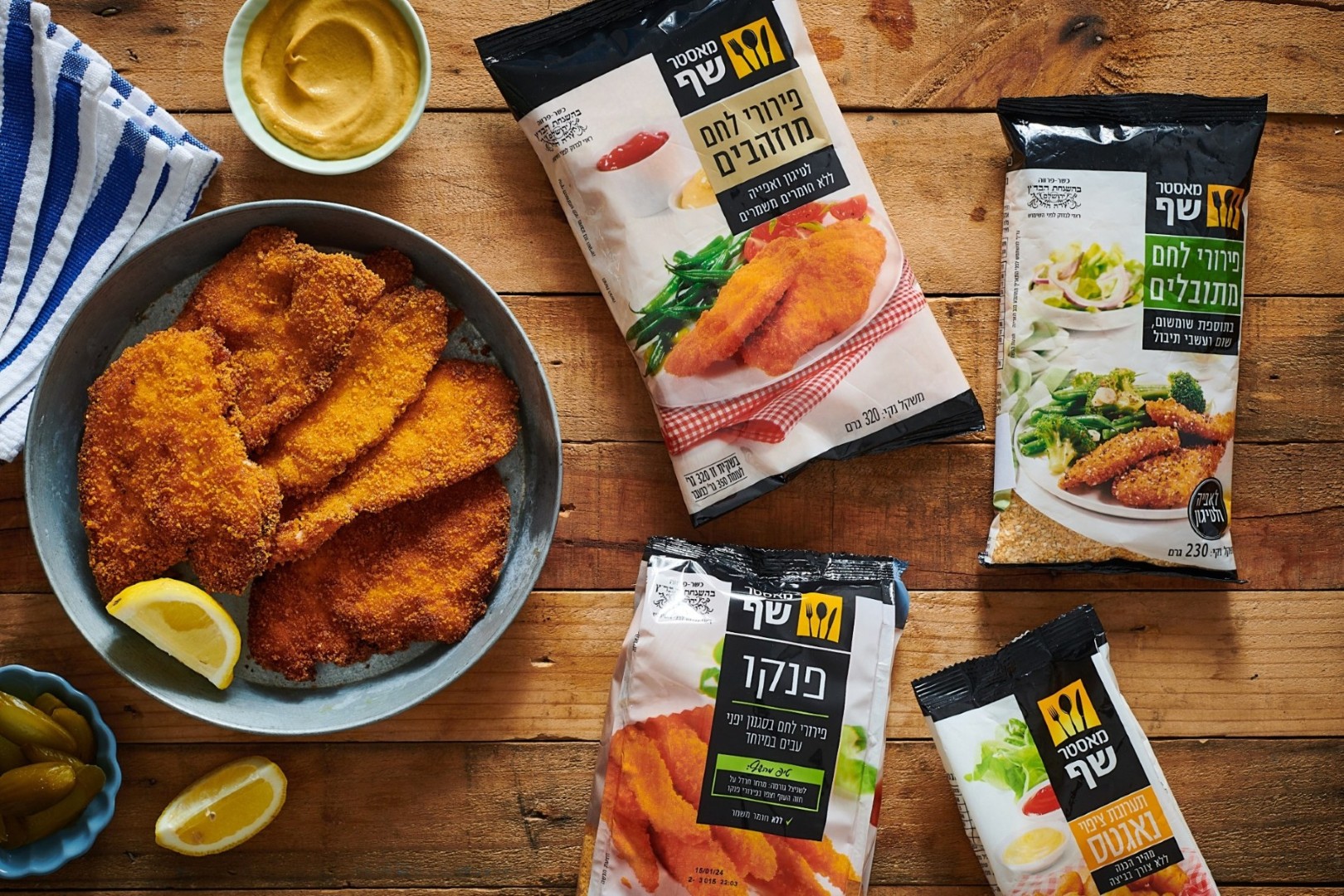 לרגל יום השניצל, המותג הקולנארי 'מאסטר שף' מציע מתכון מדויק ומנצח להכנת שניצל בבית כמו שצריך: זהוב, פריך מבחוץ ועסיסי מבפנים, כזה שלא משאיר מקום לפשרות. לצד הפירורים המוזהבים המוכרים ואהובים, מציע "מאסטר שף" מגוון סוגים פירורים ייחודיים: פירורים מתובלים, פנקו מוזהב, פנקו בתיבול שום, פנקו לבן ותערובת ייחודית לציפוי נאגטס. עם מעטפת טעימה ופריכה במיוחד – ניתן להגיש את השניצל ב-3 אופציות שונות: שניצל בטורטיה, בבגט או בלחמניה – מה שמעדיפים בני המשפחה.